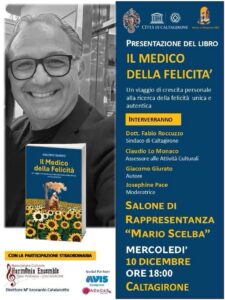 Mercoledì 10 dicembre si terrà la presentazione del libro “Il Medico della Felicità” di 𝐆𝐢𝐚𝐜𝐨𝐦𝐨 𝐆𝐢𝐮𝐫𝐚𝐭𝐨, un testo che propone un viaggio di consapevolezza e introspezione, invitando il lettore a interrogarsi su cosa significhi davvero essere felici.